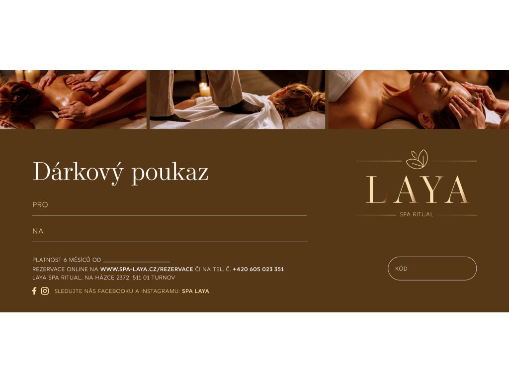 Platnost dárkového poukazu je 6 měsíců od data vystavení, pokud není stanoveno jinak. Tyto nabídky nelze kombinovat s jinou slevou, s jinou zvýhodněnou nabídkou pokud není domluveno jinak. Platnost dárkového poukazu nelze prodloužit.